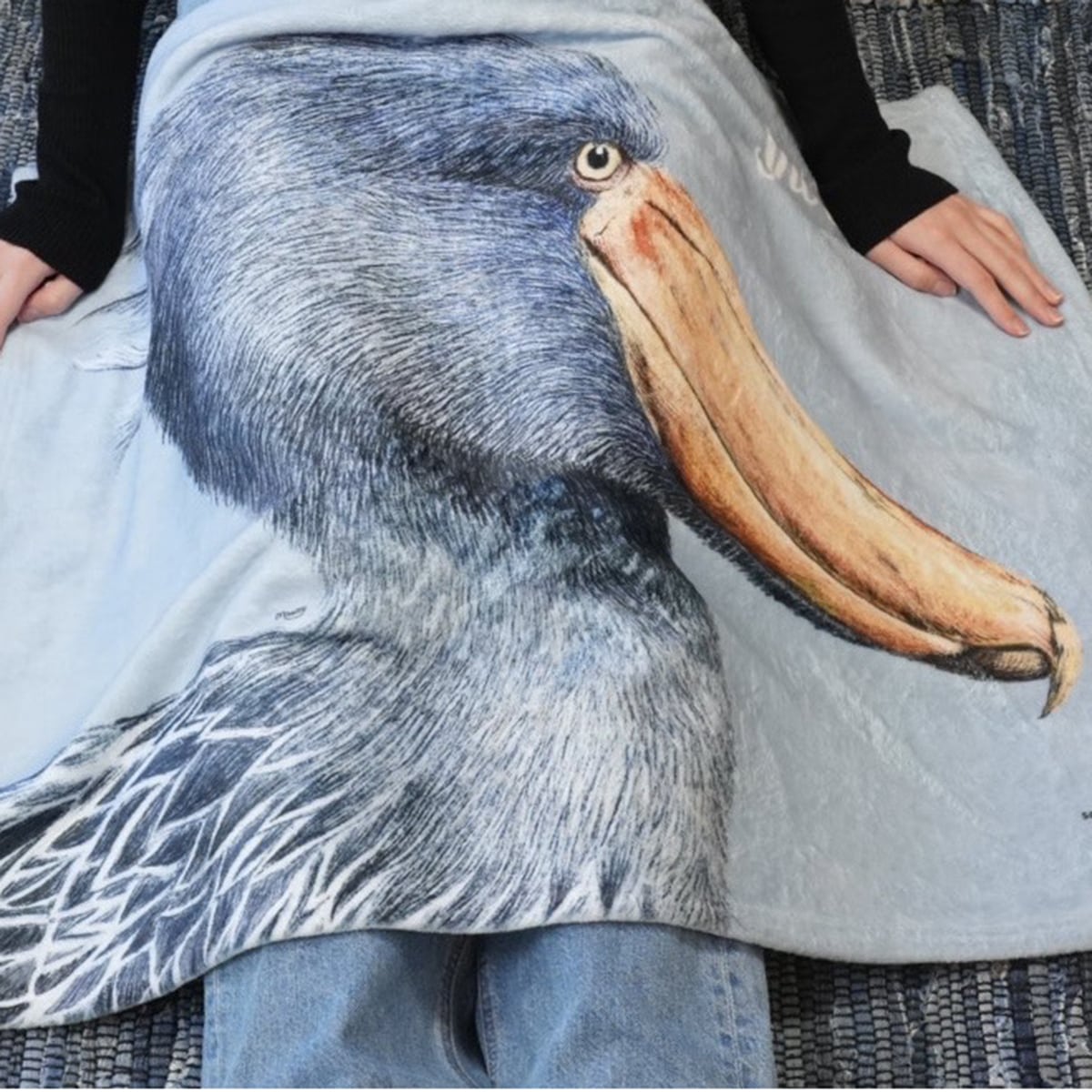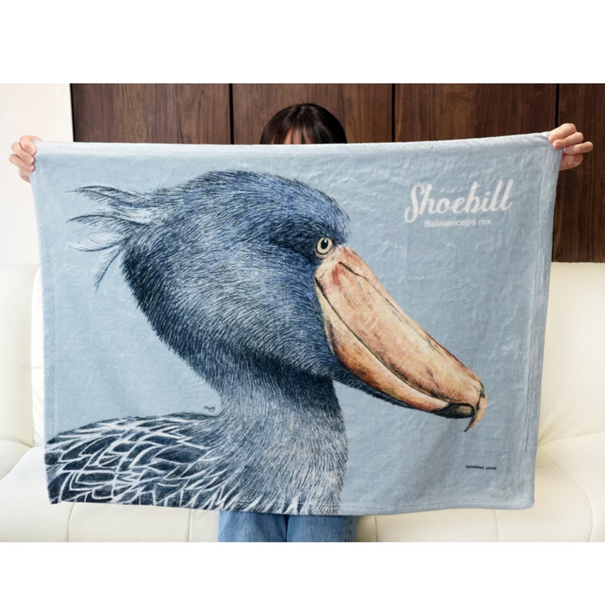 インパクトのある横顔イラストのブランケット。ふわふわで柔らかい触り心地なので、 寒い日はもちろん、冷房のの効いたオフィスでも大活躍します。660mm×910mmの大判サイズ。